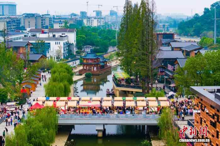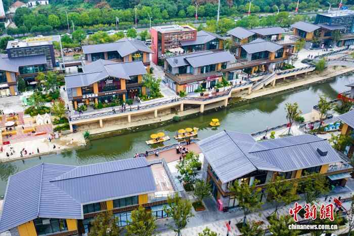 图为襄水街内游人如织。(无人机照片)张倩龙 摄