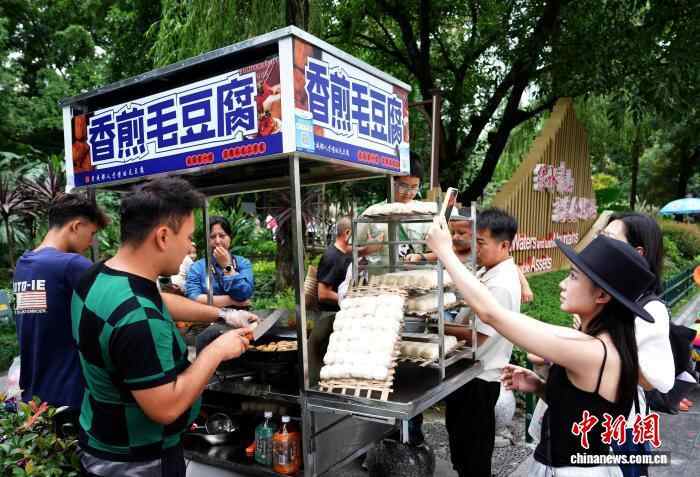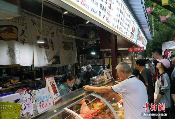 10月4日,四川成都,游客购买特色小吃。中新社记者 安源 摄