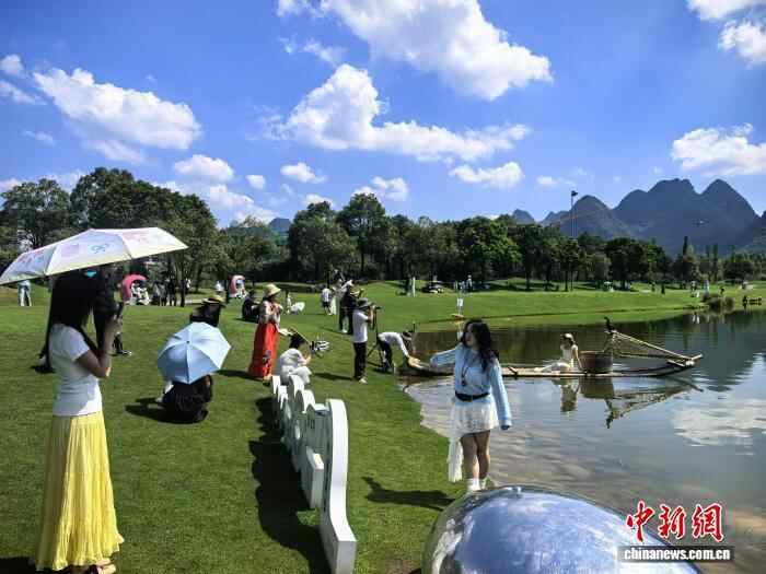 10月4日,游客在桂海晴岚景区热门拍摄地点“打卡”。邓竣缤 摄