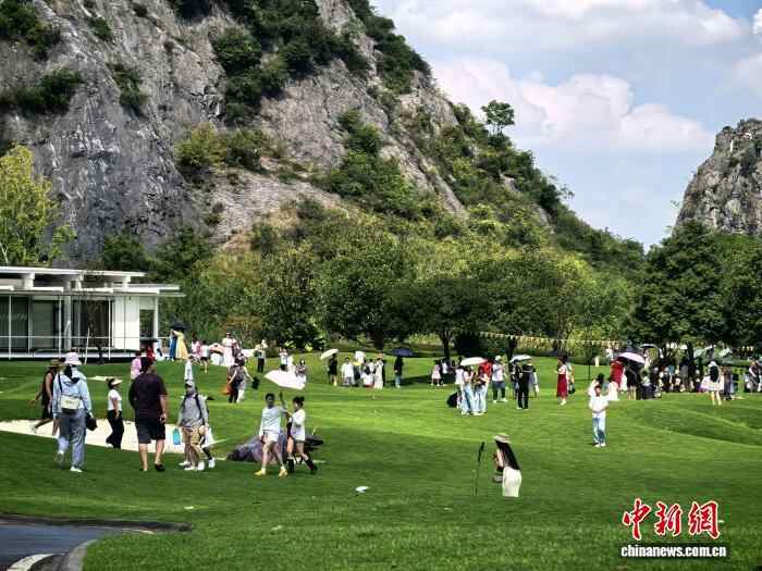 10月4日,游客们在桂海晴岚景区内游玩。邓竣缤 摄