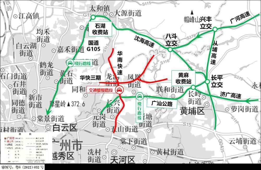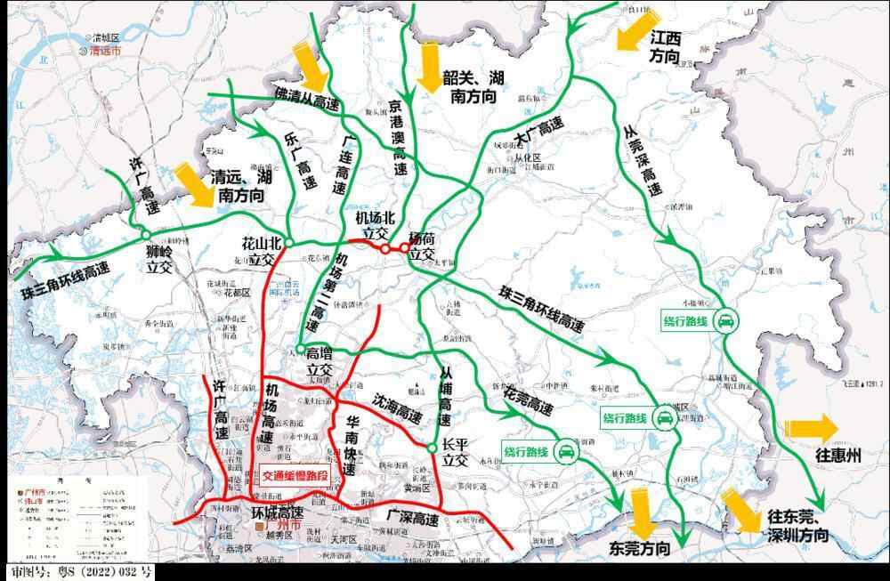 其中,为避开机场北立交、杨荷立交南行行车缓慢,建议大广高速返程旅客在从埔高速或从化收费站经国道G355,通过G105绕行进入市内。