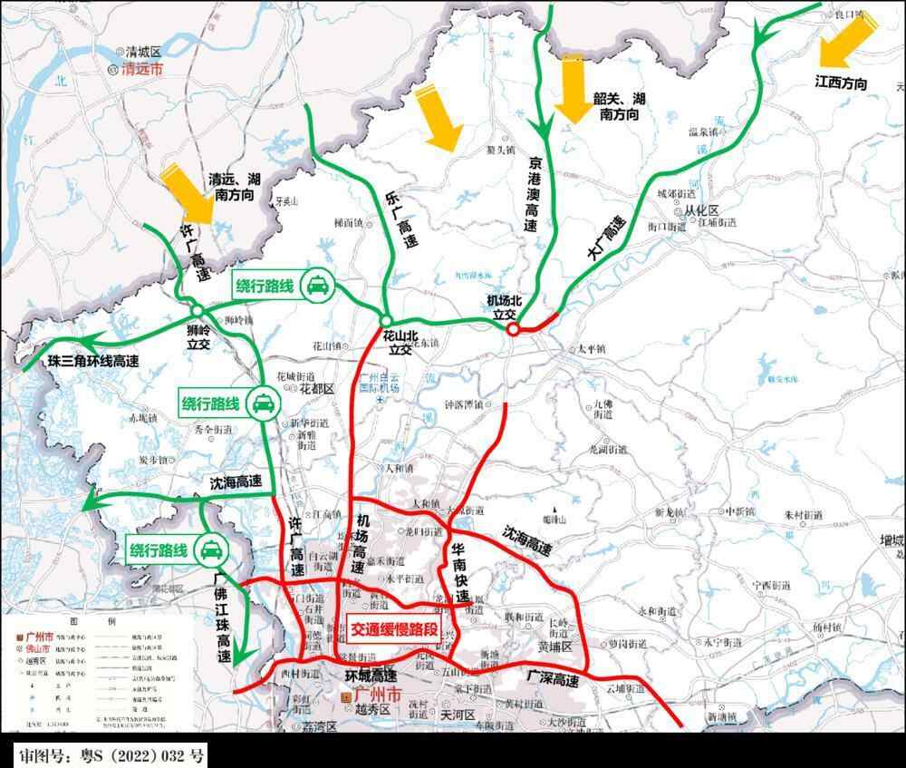 建议来自韶关、湖南方向的车主尽量避开高峰时间返城,高峰期返城的车主可以通过国道G106等地方道路或许广高速、广连高速(连接机场第二高速)进行绕行,避开机场高速行车缓慢路段。