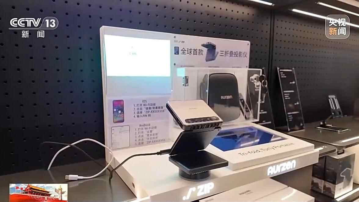 像这家店内展示的三折叠投影仪、无弦吉他、教育机器人等多门类新品,覆盖了工作、生活、娱乐等全场景。记者发现,店内推出的大量AI新品,不仅功能更强大,操作起来也更加简单,让老百姓能够更方便地使用人工智能技术。