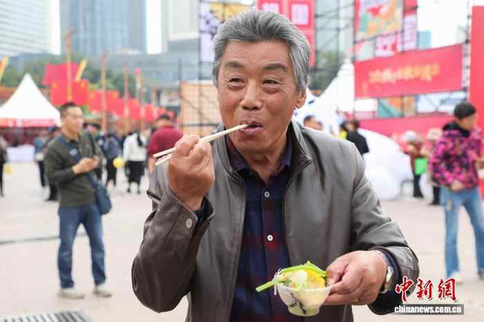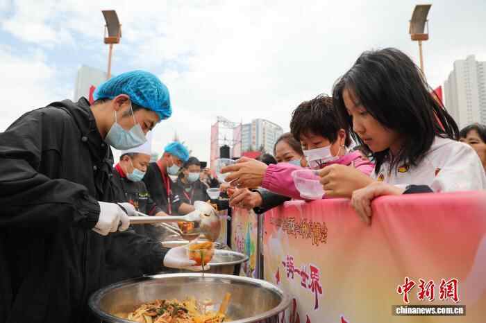 图为民众免费品尝美食。 中新社记者 马铭言 摄