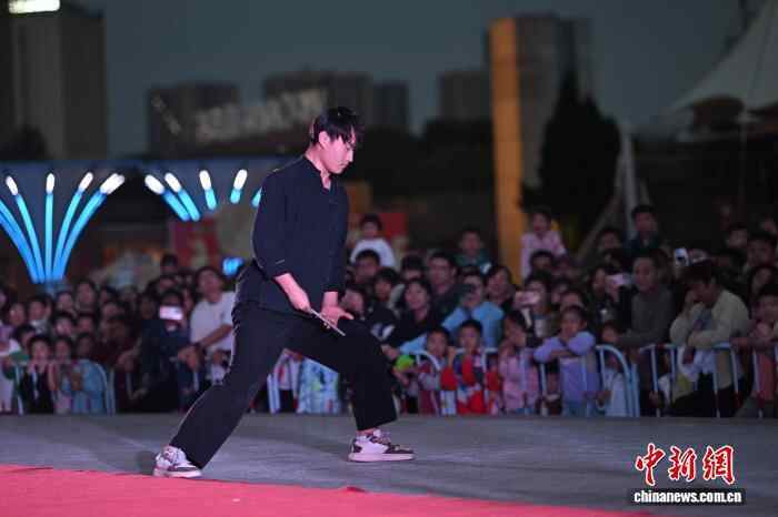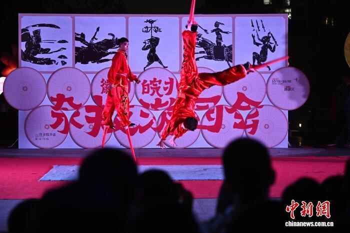 10月3日,在合肥徽园,游客观看皖北杂技表演。中新社记者 韩苏原 摄