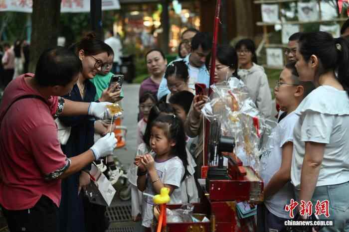 10月3日,在合肥徽园,一位小朋友在吹糖人。中新社记者 韩苏原 摄