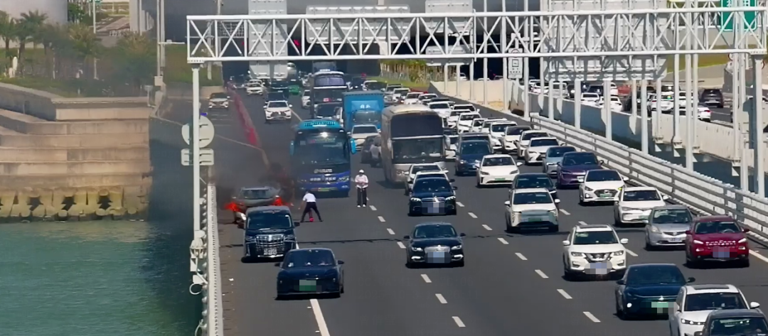 10月3日下午,一辆小车在深中通道上突发自燃,火势迅速蔓延,现场情况危急。千钧一发之际,三名路过的司机毫不犹豫地伸出援手,与起火车辆驾驶员协同使用灭火器迅速控制火势,为后续专业救援力量的到来赢得了宝贵时间。三位见义勇为的司机在消防人员抵达后悄然离去。