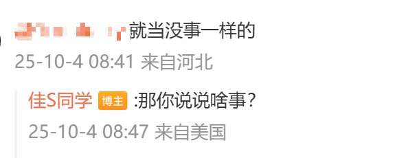 网友在陈震妻子@佳S同学 动态下评论“就当没事一样的”,她回复:“那你说说啥事?”