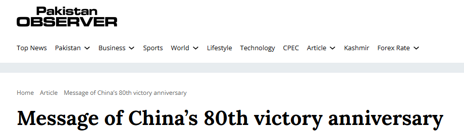 文章最后写道,中国隆重举办抗战胜利80周年纪念活动,旨在铭记历史、缅怀英烈、珍视和平、开创未来。这是对牺牲英灵的告慰,对世界和平的坚守,对历史正义的捍卫。