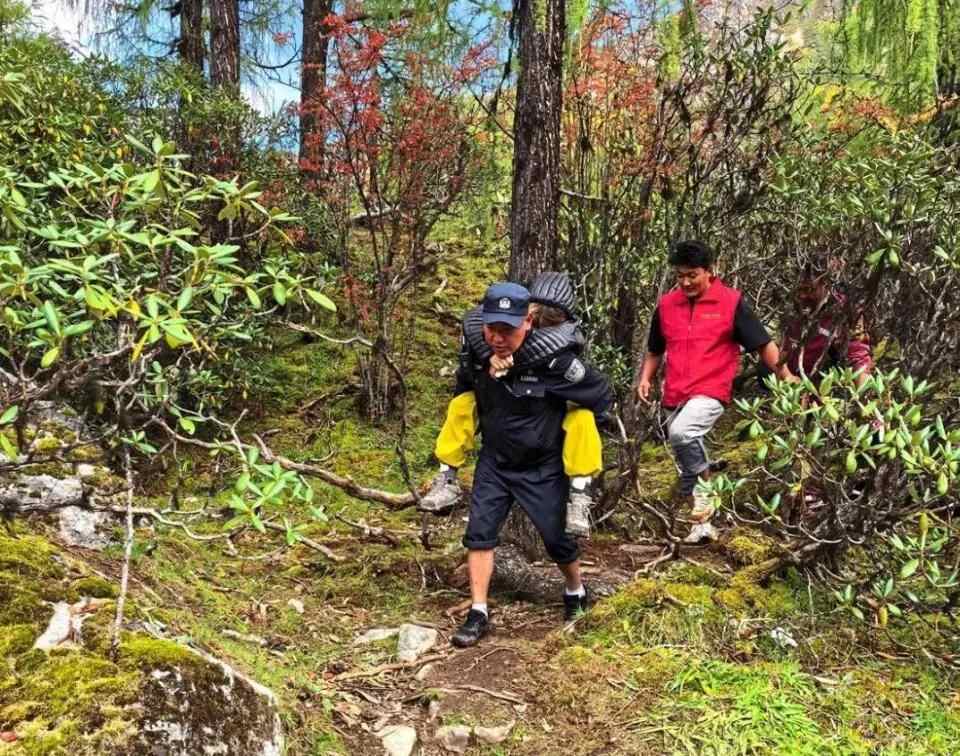 丹巴县公安局工作人员向记者介绍,该游客出事的地方海拔4700多米。接到求助后,民警和当地政府工作人员、医务人员组成救援队伍前往现场,跋涉约2小时才抵达,此时该游客已经意识模糊,现场紧急救护后情况也未见好转。因为地处高海拔地区,地形复杂,民警和其他人轮流将她背下山送往医院,经过救治,该游客身体体征已经平稳。