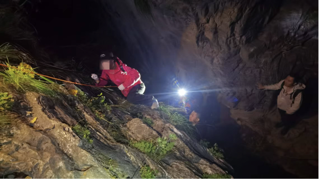“最近几次救援发现被困者大都不带照明设备,这很危险,所以,我和队员多带了几个。”休整完毕,一名队员把头灯分别给3名被困者戴上,这时,其他几名队员也做好了准备,大家合力用绳索把3人转移到了断崖上。