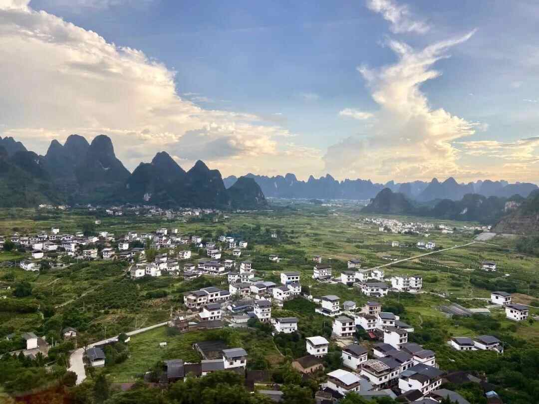 列车刚驶离阳朔站,窗外的天地便成了徐徐展开的水墨丹青。抬眼望,湛蓝天幕是最洁净的宣纸,云朵被风揉作蓬松棉絮,在日光里漫不经心地舒展,边缘晕着细碎金芒,像画师不慎洒落的金粉。喀斯特峰林,有的如出鞘利剑直刺云霄,锋棱分明;有的似骆驼伏于原野,姿态慵懒;还有的若浣纱仙女亭亭而立,眉目含情。青黛色的山影随列车前行缓缓流动,光影在岩层上勾勒出深浅褶皱,晕出几分水墨画特有的朦胧与深邃。山脚下白墙灰瓦的村落,如散落的珍珠,嵌在葱郁绿野间。这一刻望着窗外的风景,耳旁早已没有了喧嚣,只剩这幅静立的田园图,让疾驰的高铁都似乎慢了下来,任人沉醉在这阳朔独有的诗意里。(作者:陈维超)