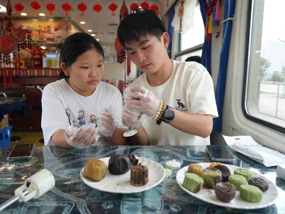 除了歌舞与灯谜,列车工作人员还精心准备了互动体验环节。旅客围坐在一起,亲手制作月饼、拼装手工灯笼。工作人员还为参与活动的旅客送上书签,大家提笔写下对家人的中秋祝愿,字里行间满是牵挂与祝福。活动尾声,身着汉服的列车工作人员端来一盘香甜的滇式月饼,邀请旅客品尝。