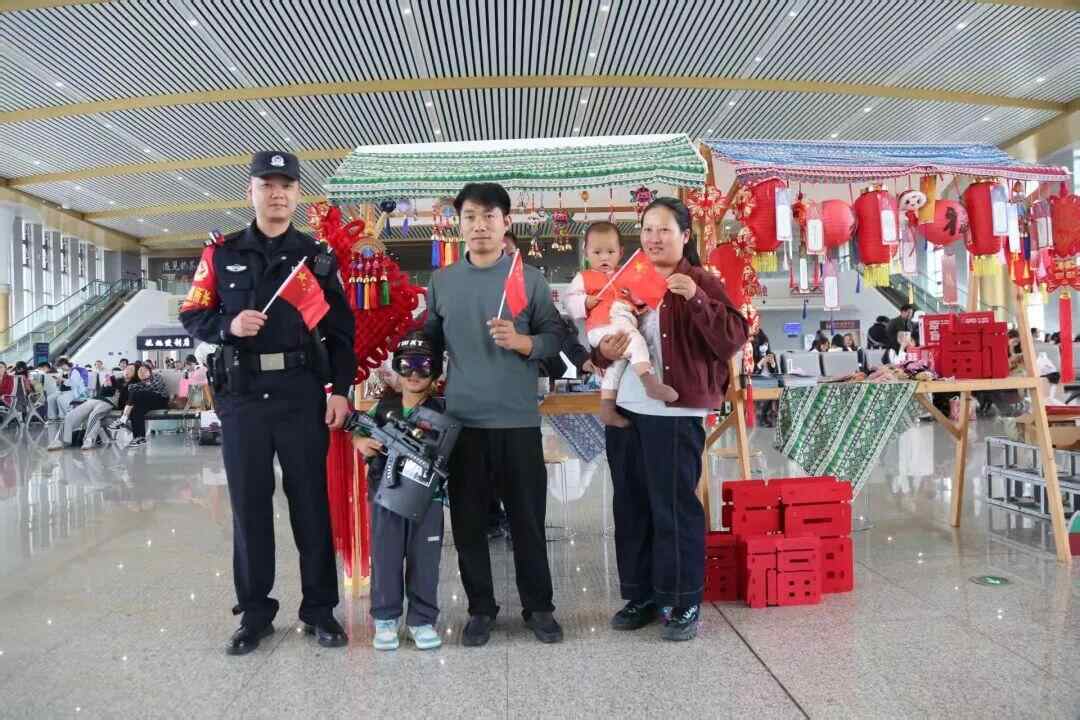 10月1日,弥蒙高铁红河站内,人山人海、气氛热烈。一场以“‘我的铁路风景’故事汇暨‘高铁连山海,家国共团圆’”为主题的活动火热展开。车站工作人员和当地文旅部门志愿者携手,为旅客带来了一场极富民族风情和家国情怀的视听盛宴。
