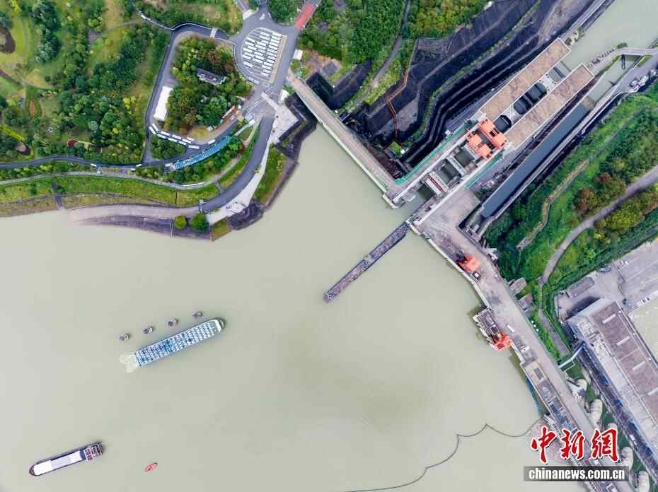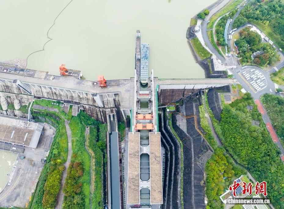 9月29日8时,三峡升船机2025年计划性停航检修完成,按期恢复通航。此次停航检修于8月25日正式启动,为期35天,共完成了7大类共计60余项检修内容。这是三峡升船机正式通航以来的第五次计划性停航检修。图为船舶有序通过三峡升船机。(无人机照片)
