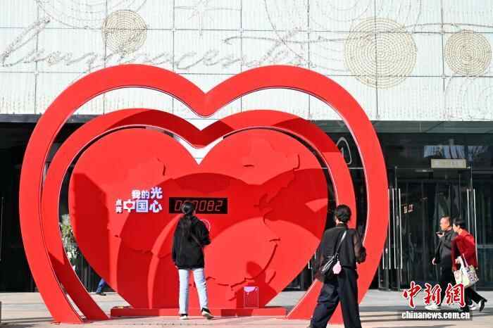 9月29日,临近国庆节,甘肃兰州街头新设的“国庆”主题展板吸引游客打卡。中新社记者 九美旦增 摄