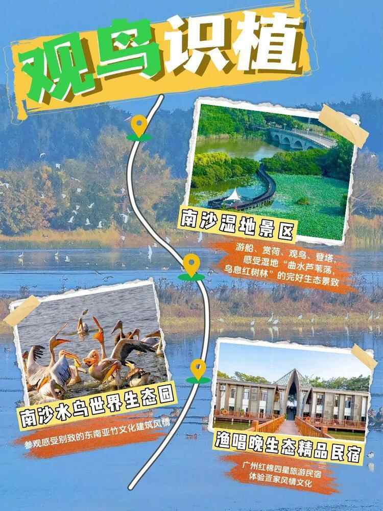 推荐路线:南沙湿地景区→南沙水鸟世界生态园→渔唱晚生态精品民宿