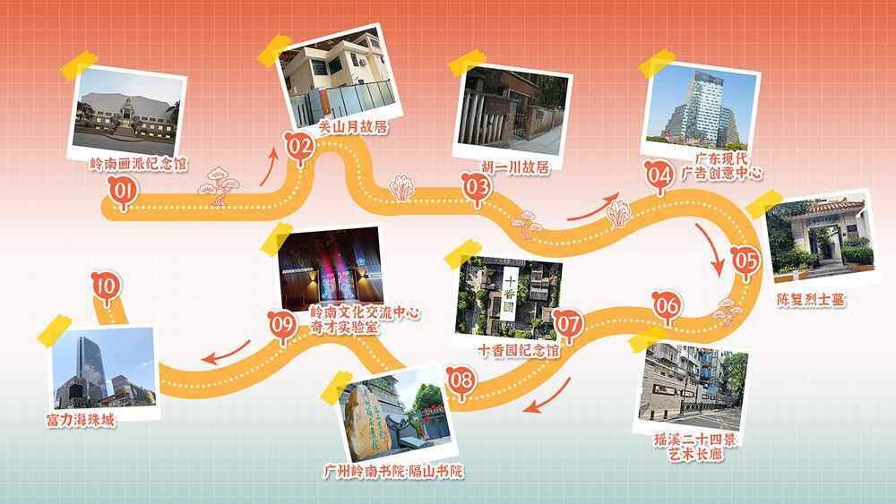 在9月29日的活动上,昌岗街道将散落在昌岗的红色地标、艺术故居、生态景观,与文创空间串联成珠,编辑并发布《昌岗地区文旅打卡路线图》。顺着路线图,公众可以一路打卡岭南画派纪念馆、关山月故居、胡一川故居、广东现代广告创意中心、陈复烈士墓、瑶溪二十四景艺术长廊、十香园纪念馆、广州岭南书院(隔山书院)、岭南文化交流中心奇才实验室、富力海珠城等街道重要地标。