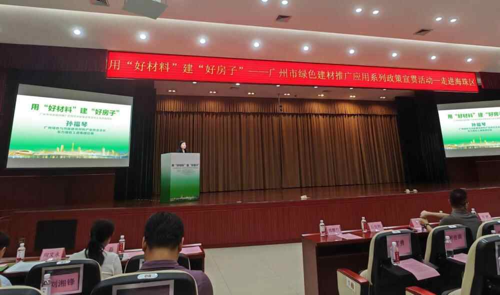 为落实中央城市工作会议精神,加强绿色建材推广应用,日前,由广州市住房和城乡建设局牵头策划,海珠区住房和建设局具体指导,广州绿色与功能建筑材料产业协会与广州市海珠区建筑和园林协会联合主办的“用‘好材料’建‘好房子’——广州市绿色建材推广应用系列政策宣贯活动之走进海珠区”活动在广州市海珠区委党校召开。