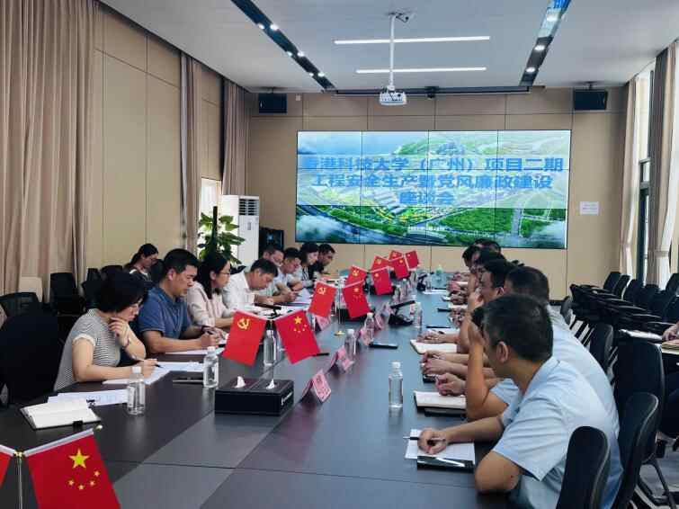 在香港科技大学(广州)二期工程安全生产及党风廉政建设座谈会上,派驻组结合工程项目领域易发多发的廉洁风险点,对项目负责人、关键岗位管理人员及施工、监理单位代表进行节前廉洁提醒,指出节点即“考点”,全体项目管理人员务必严守纪律规矩底线,严禁违规收送礼品礼金、违规吃喝、公车私用等行为,严防“四风”反弹回潮,持续巩固拓展深入贯彻中央八项规定精神学习教育成果。