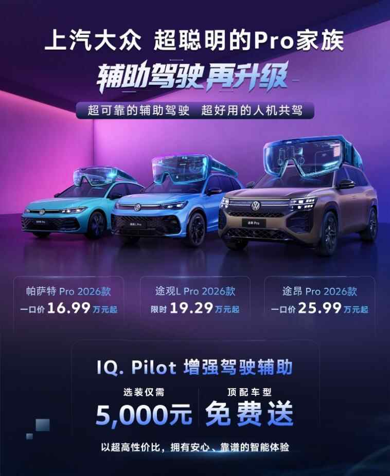 【点评】上汽大众Pro家族2026款的上市,不仅为燃油车用户提供了严苛安全品质下的辅助驾驶与智舱解决方案,更实现了“油电平权”的体验。