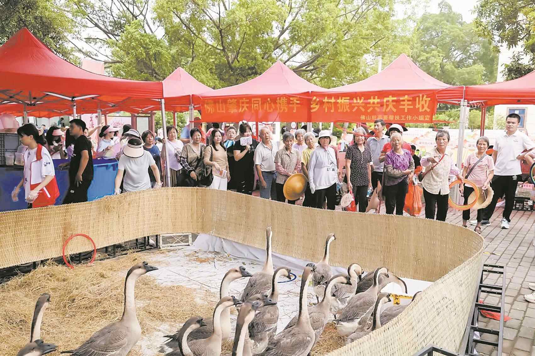 为响应中国农民丰收节金秋消费季部署,肇庆、汕头、韶关、湛江四市代表现场发布“庆丰收·促消费”金秋消费季大礼包,进一步激活农产品消费市场。同时,活动打造“丰收集市”,设置广东21地市农特产品展区、肇庆8县(市、区)产品展区及高要产品展区,让群众“一站式”品尝岭南特色“丰”味——肥美的高桂虾、香甜的菠萝蜜、咸甜交织的疍家糕等“土特产”集中亮相,借助现场电商、媒体直播镜头拓宽销售渠道。