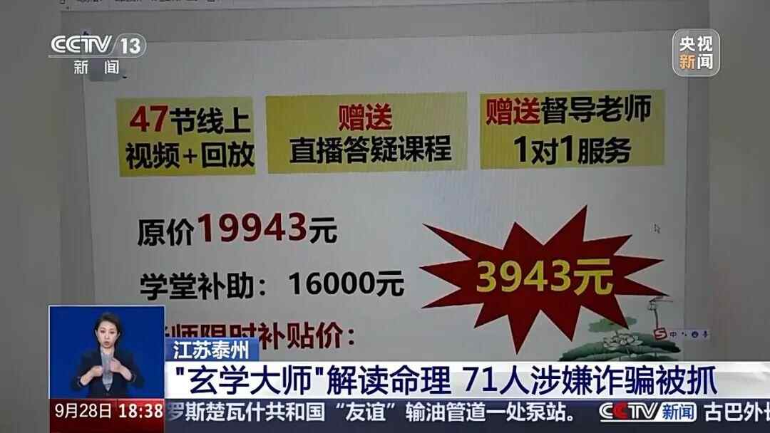 近日,江苏省泰州市警方经过缜密侦查,打掉一个“玄学大师”诈骗团伙,抓获犯罪嫌疑人71名,冻结涉案资金2000余万元,涉及全国十余个省份3000余名受害人。