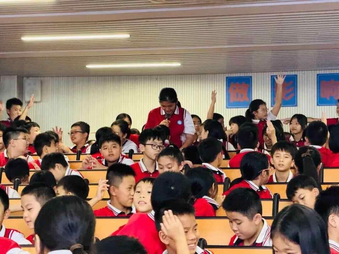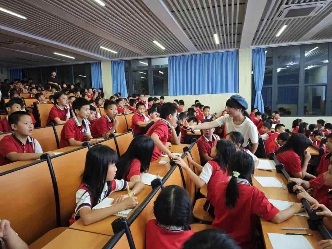 9月26日晚,羊城晚报艺术研究院诗歌教育负责人、中国诗歌学会会员小王老师走进永翔实验学校小学部,为全体316名同学带来了一堂生动而充满诗意的诗歌课。这次课程也延续了今年4月同学们前往翁城开展的诗歌研学之旅——当时150多名孩子在中大街和广肇会馆初探“诗歌的世界”,不少同学写下了人生中的第一首诗。正因如此,再次与诗歌相遇,孩子们眼中满是憧憬与期待。