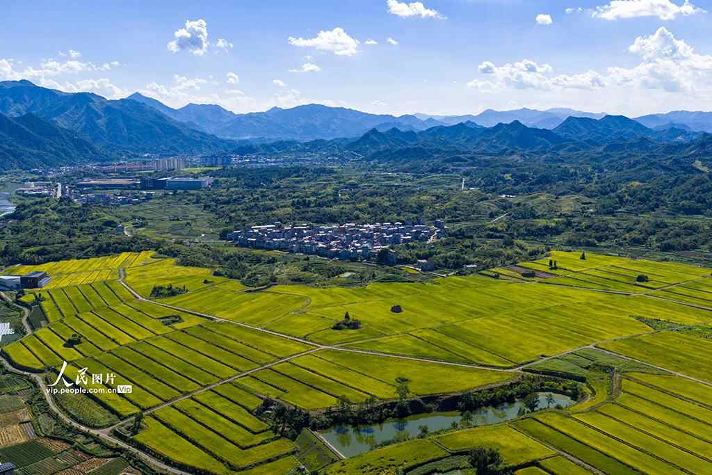 近年来,缙云县舒洪镇通过全域土地综合整治与生态修复工程,以“土地整治+绿色发展”为发展定位,通过优化空间布局,壮大乡村经济,改善生态环境等措施,不断改善人居环境,提升乡村品质。眼下稻穗渐满,丰收在望,一幅农业提质、乡村蝶变的振兴图景正徐徐展开。章勇涛摄(人民图片网)