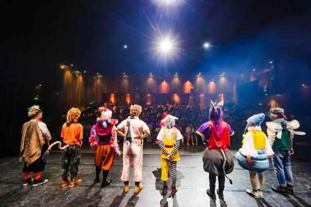 音乐剧《猫》开演前,演员在台下与观众互动。
