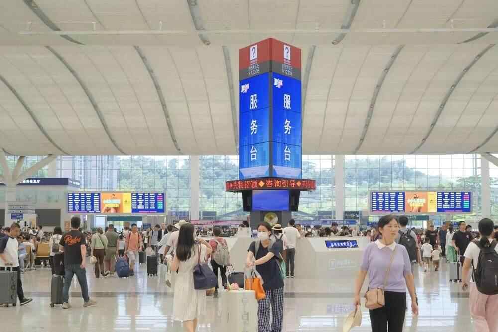 假日前期,广州南站在二层东平台增设服务台,具备旅客问询、改签退票、广播找人、失物招领、爱心服务等功能,同时在一层东、西服务台增设改签退票功能,将服务窗口前移,进一步方便旅客出行。