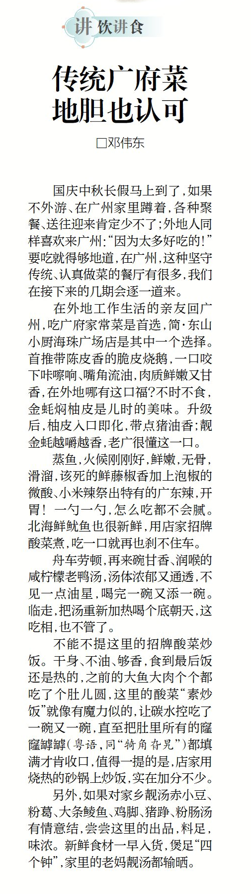 国庆中秋长假马上到了,如果不外游、在广州家里蹲着,各种聚餐、送往迎来肯定少不了;外地人同样喜欢来广州:“因为太多好吃的!”要吃就得够地道,在广州,这种坚守传统、认真做菜的餐厅有很多,我们在接下来的几期会逐一道来。