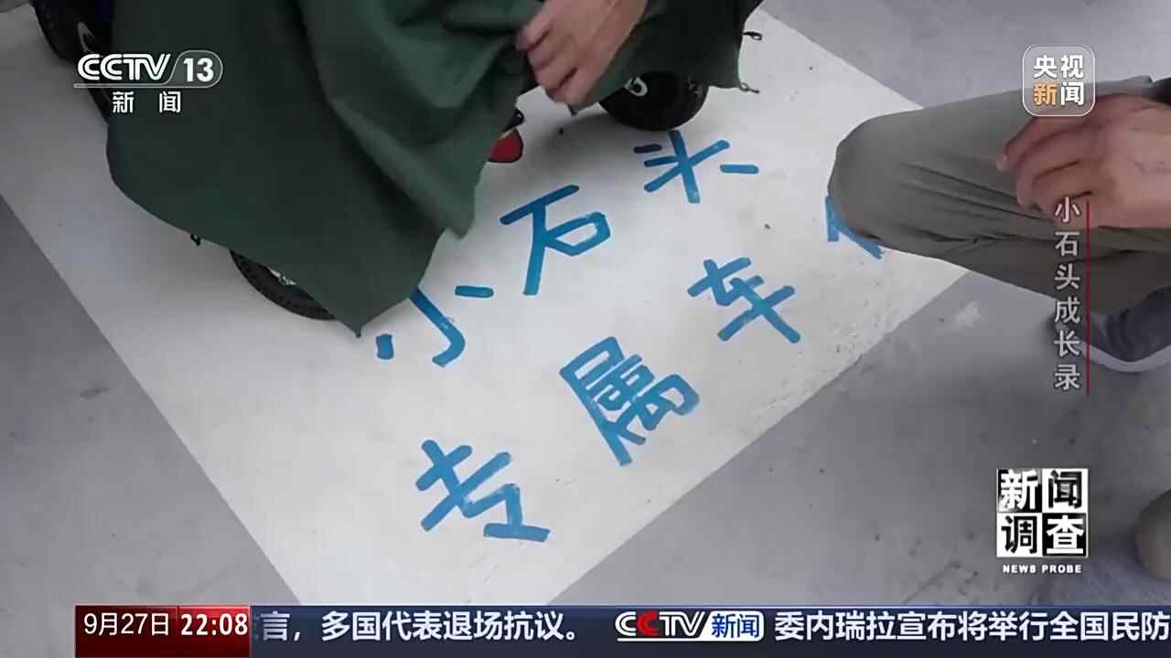 学校在小石头班级的门前台阶铺了坡道,班主任也把小石头的座位安排在了进出门最方便的地方,在学校教职工停放电动车的地方还给小石头的电动轮椅预留了车位。最暖心的是给陪读的爷爷安排了专门的座位和休息室,小石头在学校也一天天找到了适合自己的学习方式。