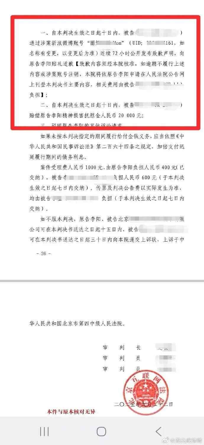 北京互联网法院认定李阳前妻发布的“李阳暴力殴打子女”等言论无充分证据支撑,构成名誉侵权,判决其在涉案账号连续72小时发布《致歉声明》并支付精神损害抚慰金。