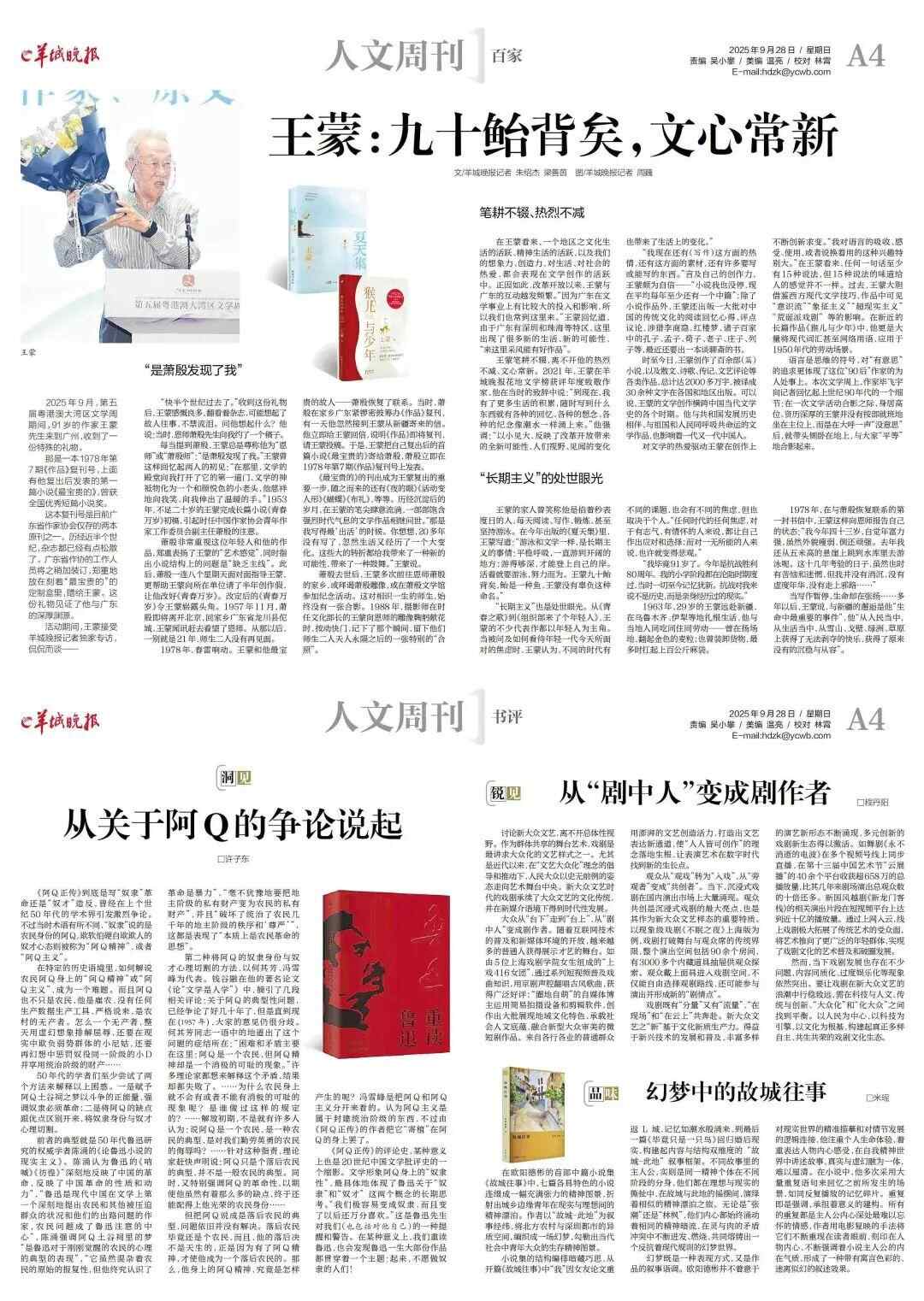 王蒙的笔耕不辍,离不开他的热烈不减、文心常新。2021年,王蒙在羊城晚报花地文学榜获评年度致敬作家,他在当时的致辞中:“到现在,我有了更多生活的积累,随时写到什么东西就有各种的回忆、各种的想念、各种的纪念像潮水一样涌上来。”他强调:“以小见大,反映了改革开放带来的全新可能性,人们视野、见闻的变化也带来了生活上的变化。”