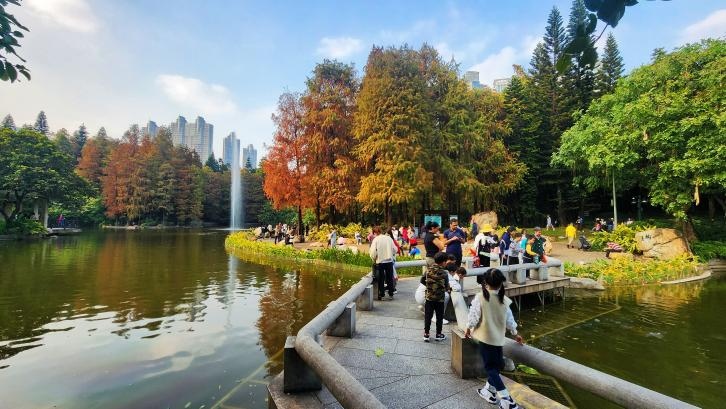 在这里,万物和谐共生,生态欣欣向荣。作为植物活化石的笔筒树、拥有金色毛发的金毛狗蕨、小巧精致的花叶冷水花、色彩奇特的紫背竹芋……植被覆盖率91%的公园宛如天然植物博物馆,800种植物中包括国家一级保护植物3种、二级保护植物13种。而最近开放的“芳香径”和“疗愈径”更将友好延伸到心灵层面——盲文解说牌引导视障游客嗅闻桂花清香,树洞装置里收录着市民的暖心留言,让自然成为治愈都市焦虑的良药。