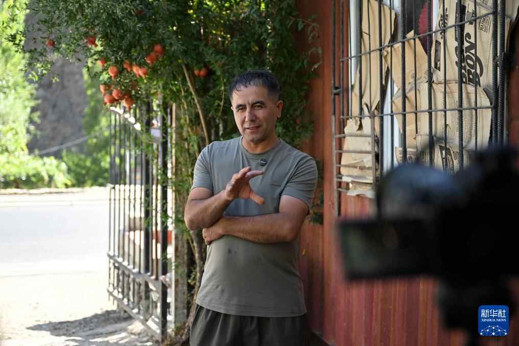 9月11日,在塔吉克斯坦卡拉依洪姆村附近,村民基什瓦尔接受新华社记者采访。 新华社记者 李任滋 摄