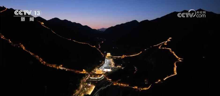 而在居庸关长城景区,已经提前开启了“夜游”模式。云台、城楼被依次点亮,夜幕下的居庸关长城宛如一条金色巨龙横亘于山脊之上,“天下第一雄关”的巍峨磅礴气势跃然眼前。