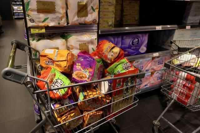 购物车里堆满了生活物资