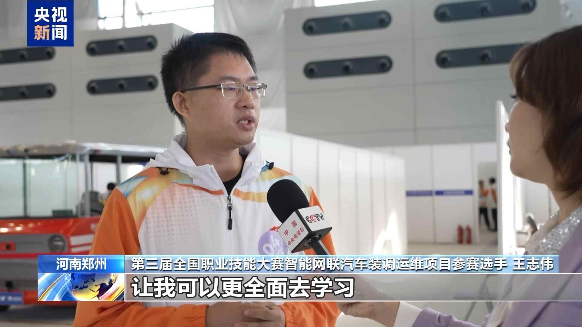 第三届全国职业技能大赛智能网联汽车装调运维项目参赛选手 王志伟:因为我平时的工作是以写代码为主,正好有比赛的机会,让我可以更全面去学习,比如像装调、标定等车辆下线的流程,对我个人技能提升帮助很大。
