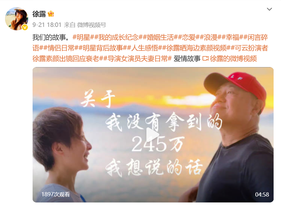 因饰演《情深深雨濛濛》中“可云”一角被观众熟知的演员徐露,近日针对网传“索要245万天价彩礼”“嫌弃老公长得丑不生孩子”等谣言,于9月21日发布视频正面回应,澄清不实信息的同时,分享了自己与导演老公姜凯阳的相识相恋故事,引发广泛关注,9月23日相关话题更是登上热搜。