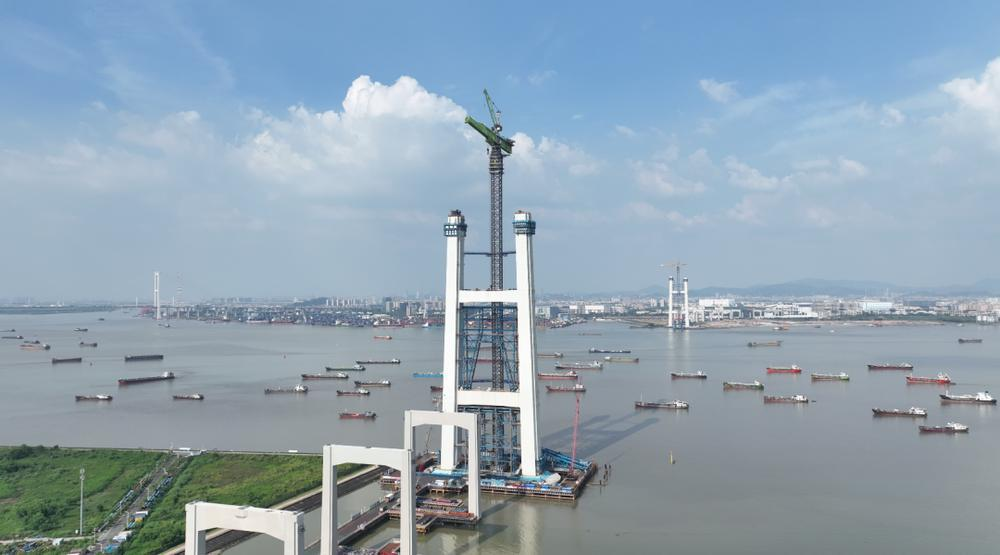 近期,狮子洋大桥正进行桥塔建造,为进一步提高主桥主塔施工塔吊的抗风安全储备,结合台风登陆风速研判,负责主桥施工的两个标段紧急调派设备厂家专业团队到现场,协同施工团队对两台塔吊采取降低了塔吊在扶墙以上的自由悬臂高度、提升钩头至最高位,同时结合回转风标打开自由回转等措施,全方位、多维度保障塔吊安全度台。
