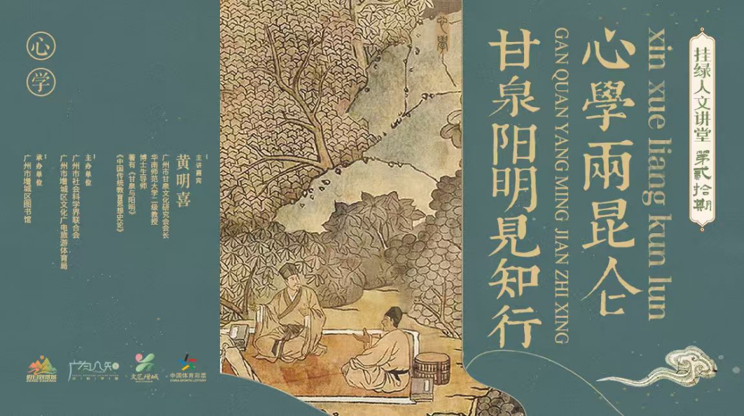 由广州市社会科学界联合会、增城区文化广电旅游体育局联合主办,增城区图书馆承办的“挂绿人文讲堂”第二十期——“心学两昆仑:甘泉阳明见知行”主题讲座,以明代心学双璧王阳明与湛甘泉的学术交游为脉络,钩沉心学思想在岭南的传承脉络,诠释“和而不同”的学术智慧。主讲嘉宾黄明喜教授作为广州市甘泉文化研究会会长、华南师范大学博士生导师,以学术权威视角带领现场听众穿越时空,触摸心学思想的温度。