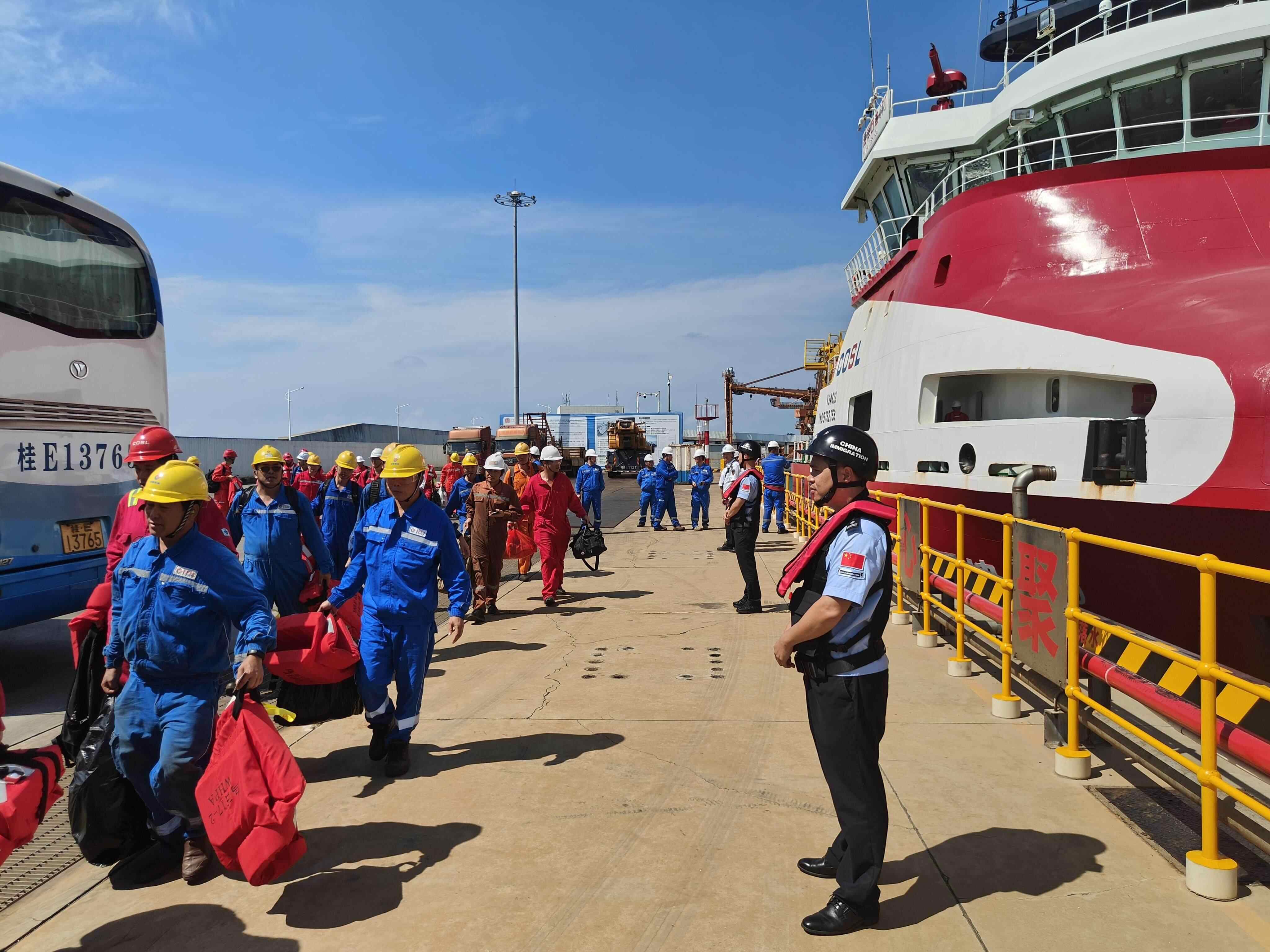 超强台风“桦加沙”逐步逼近,记者从珠海边检总站湛江边检站了解到,该站迅速启动应急响应,全力保障口岸安全及船舶、人员平安。9月23日,湛江边检站在大唐雷州电厂口岸重件码头开启紧急通道,保障乌石油田群作业平台130余名工作人员顺利撤离避风。