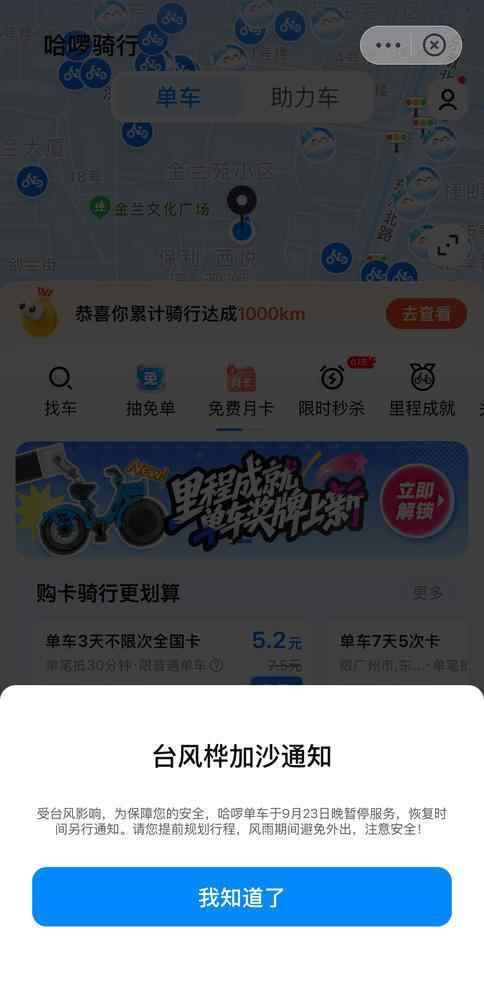 9月23日,广州发布“五停”(停工、停业、停市、停运、停课)通知。23日晚,记者查询共享单车软件获悉,受台风影响,共享单车在广州的运营时间有变。