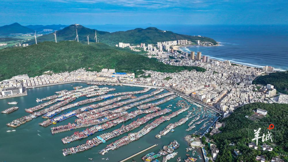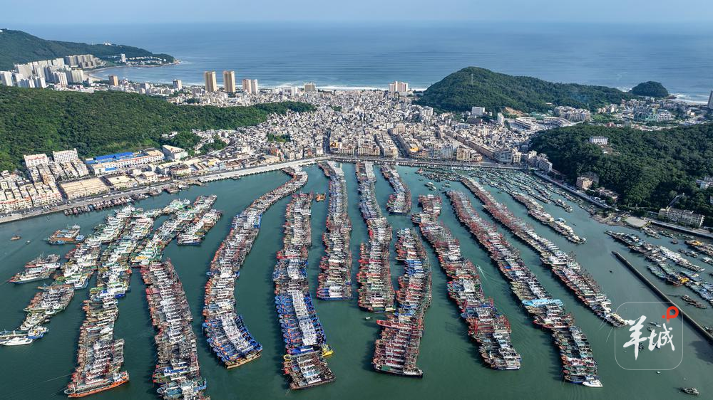 闸坡渔港内,回港避风的渔船整齐地停放着。“目前,这里已停有广东省内渔船540多艘、省外渔船约300艘。我们要求所有回港避风的渔船加固锚缆、人员上岸。”闸坡海洋综合执法大队综合协调组组长潘智聪指着远处的渔船,语气笃定。