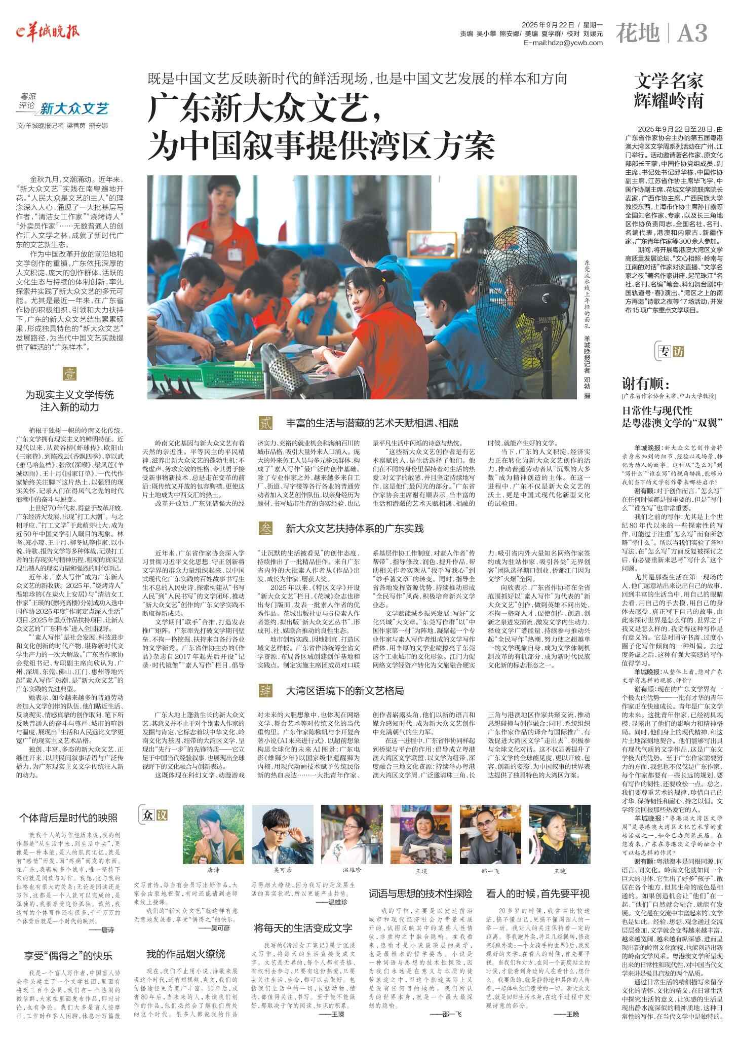 作为中国改革开放的前沿地和文学创作的重镇,广东依托深厚的人文积淀、庞大的创作群体、活跃的文化生态与持续的体制创新,率先探索并实践了新大众文艺的多元可能。