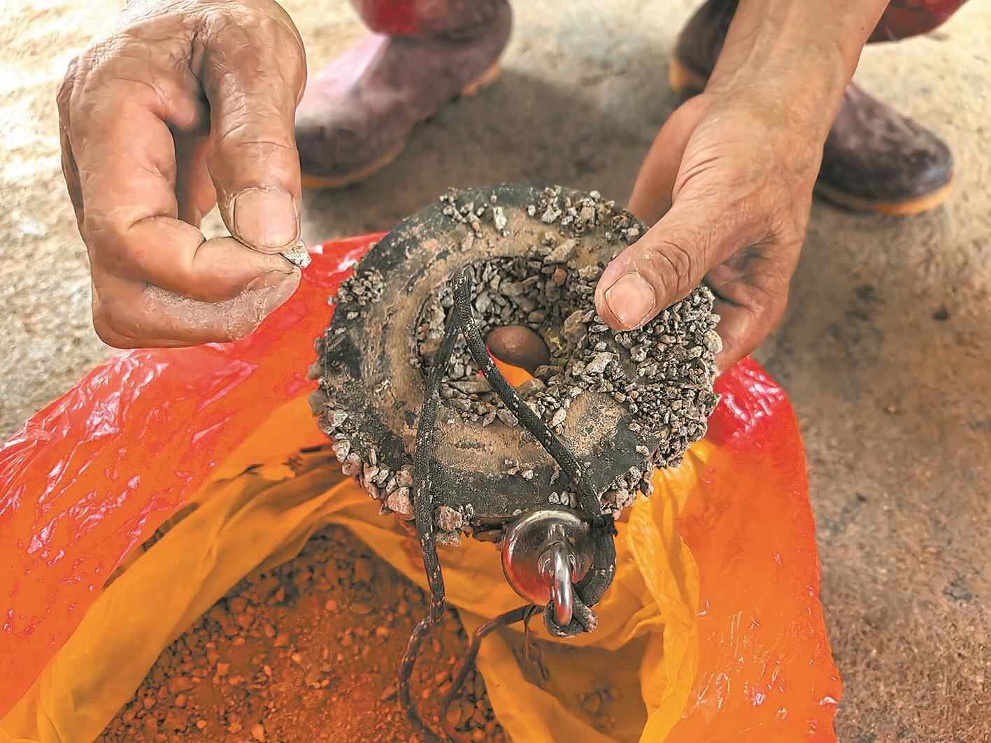 见到记者到来,何叔拿出一个塑料袋,里面有一块磁石吸附不少碎石。“这是在石坑周边的碎石,能被磁铁吸引。”何叔说,5月28日晚上,他在果园民屋里睡觉,突然传来一阵巨响,房屋都震动起来,但巡视一圈,没有发现起火等异常情况便继续睡觉。6月3日,他碰见了步凡和陈金龙两个人在果园里。询问对方是干什么时,对方举了一下佩戴的牌子,声称是“工作人员”。后来,何叔也向村委会说明了此事。