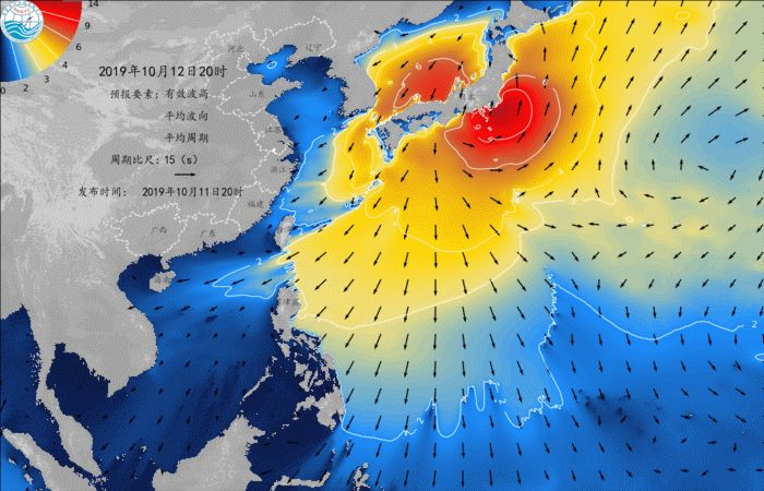 根据当年国家海洋预报台10月12日发布的海洋预报, 受台风“海贝思”(强台风级)的影响, 日本海有4到7米的巨浪到狂浪区; 日本以南、以东洋面有7到11米的狂浪到狂涛区。