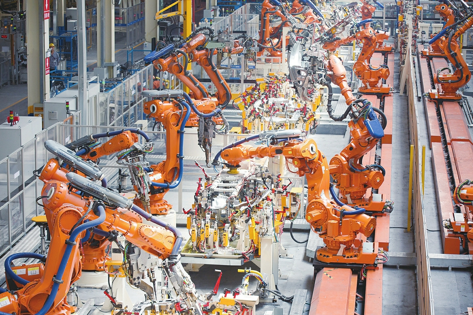 ▲吉利汽车晋中基地的全自动机器人涂装生产线